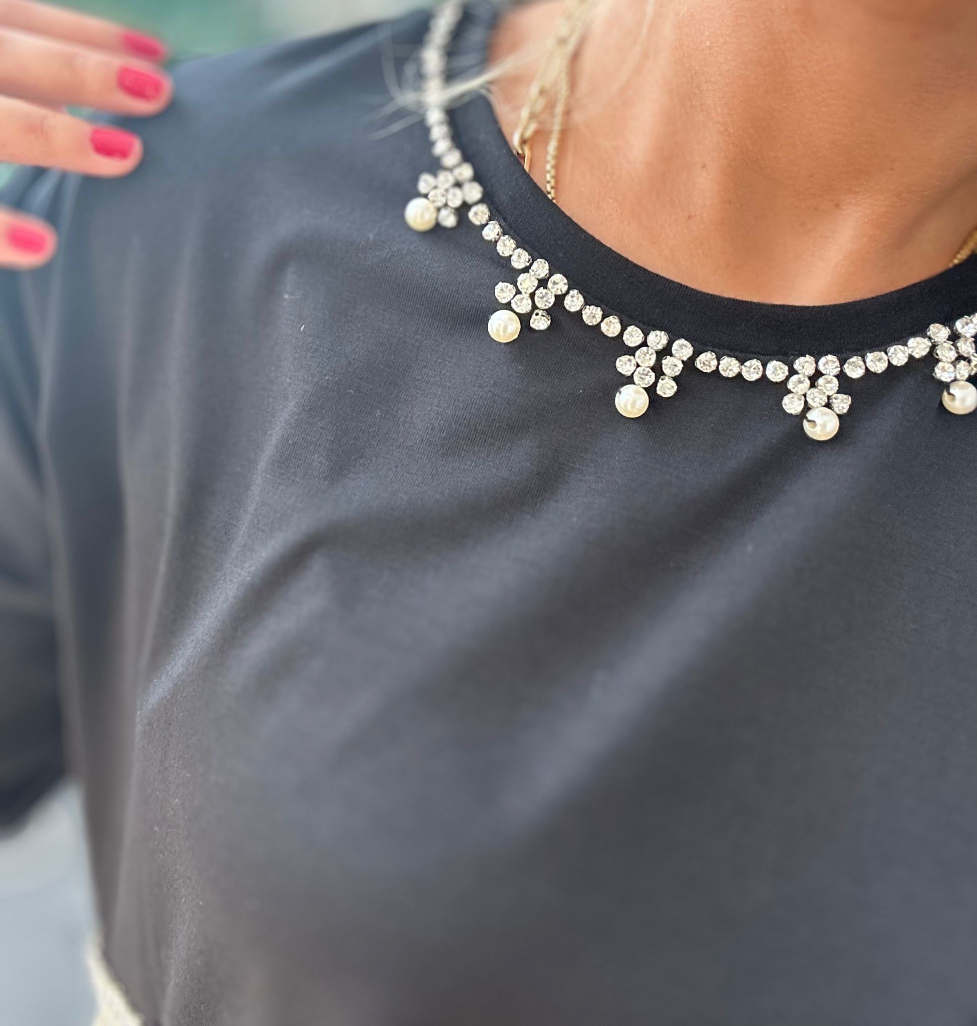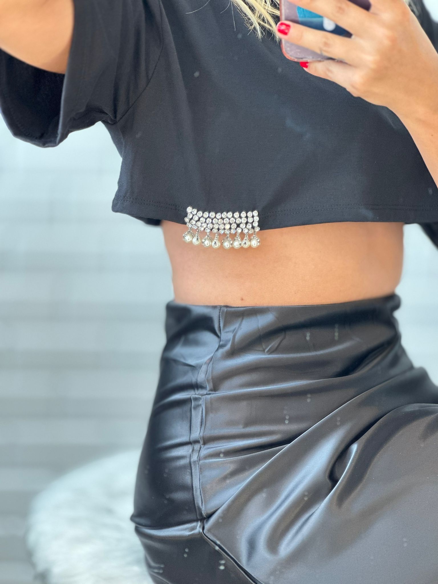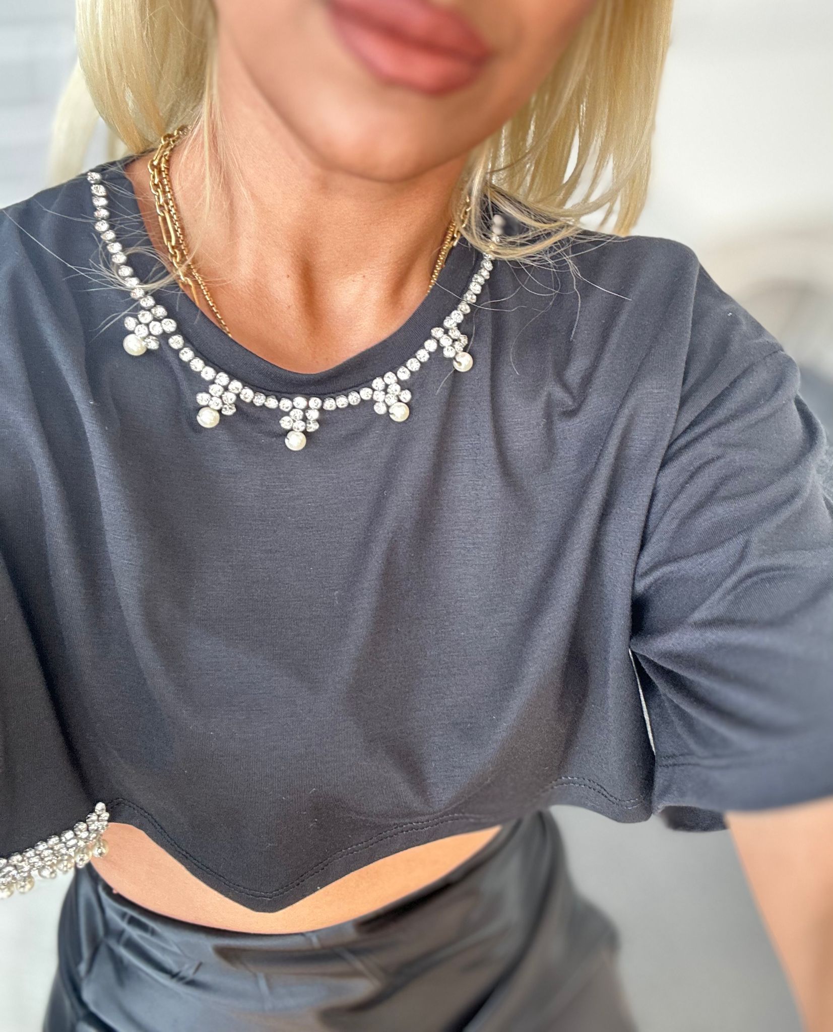 Taş Detaylı Crop Tshirt